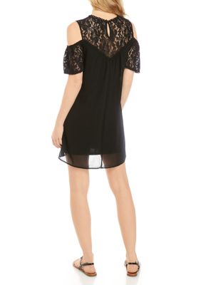 Womens Juniors As U Wish Black Cold Shoulder Shift Party Mini Dress Size Small