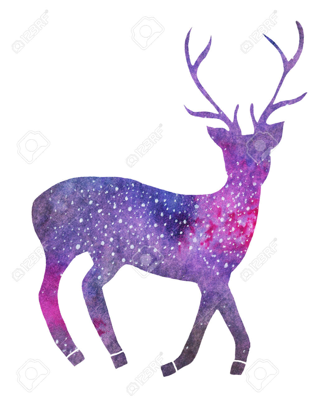 Cerfs Galaxy. Main Dessiné Cerfs Cosmique. Peinture à L'aquarelle Réel Banque D'Images Et Photos Libres De Droits. Image 52232618.