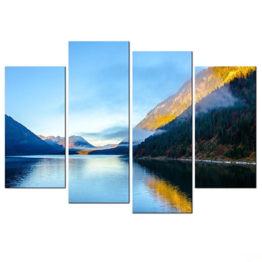 Acheter Sans Cadre Lac Montagne Paysage Toile Peinture 4 Panneaux Art Imprimer Affiche Style Photo Murale Pour Salon Moderne Décor À La Maison De 16,96 € Du Fashion_wallart | DHgate.Com