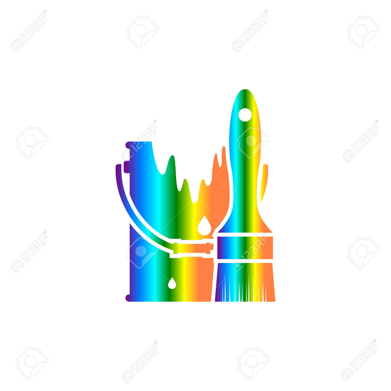 Peinture Concept, Pinceau Et Un Pot De Peinture. Modèle De Logo. Restauration, Décoration, Peinture Fonctionne. Couleurs De Ciel. Vector Illustration Design Plat. Clip Art Libres De Droits , Vecteurs Et Illustration. Image 66621095.