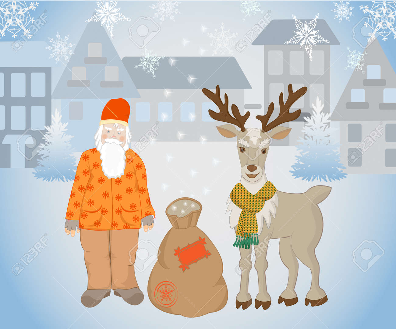 Vettoriale - Babbo Natale E Renne Con Doni In CittĂ Inverno Image 34044935.