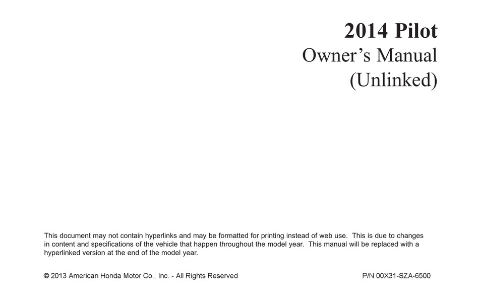 Honda 2014 pilot owner's manual pdf download